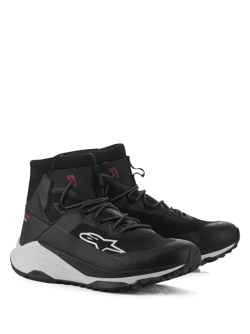 - Integrierte Alpinestars Transversal Protection Frame (TPF) Technologie mit vorderem Querbalken aus Metall im Vorfußbereich, TPU-Schaft und einer PU-Zwischensohle für unvergleichlichen Querfußschutz bei gleichzeitigem Laufkomfort und Abrollverhalten eines Laufschuhs.